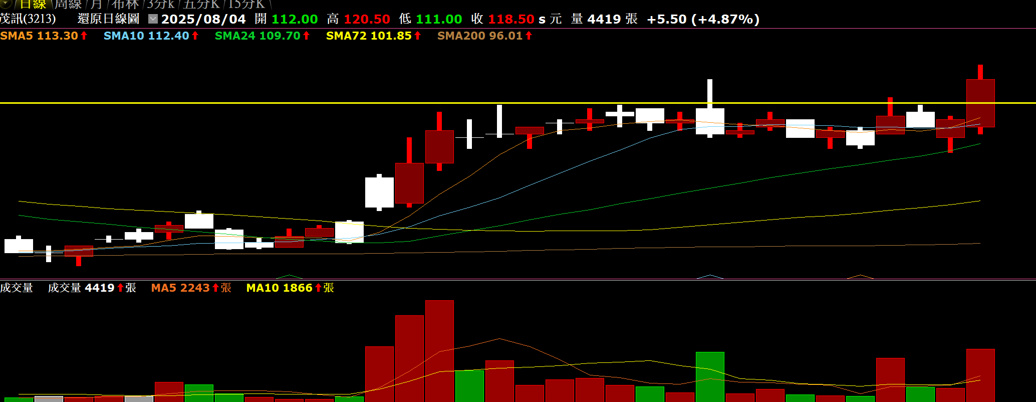 雖說按照所想順利上漲,但這種拉抬方式根本買不到,沒意外是踏空了,後續不會積極追價