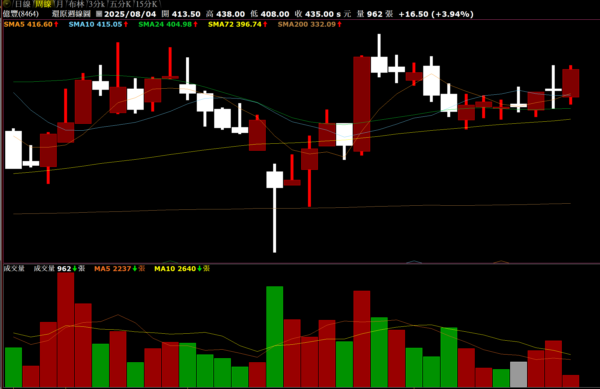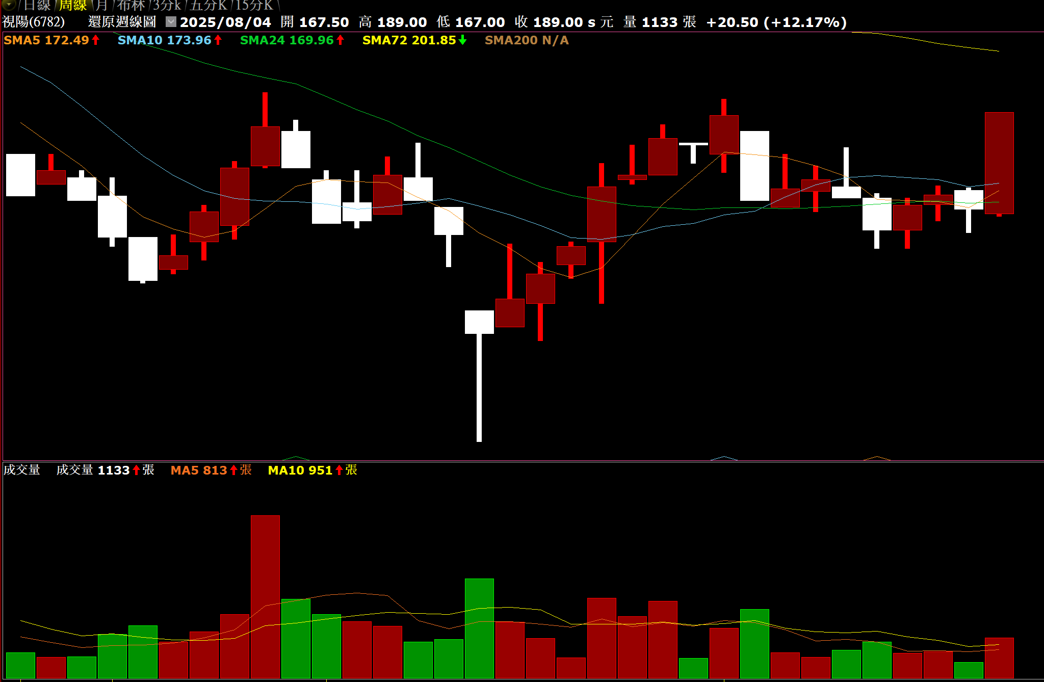 周線級別收斂中,癌沒有明顯出量突破,可以多觀察後續有無出量攻擊。