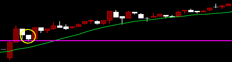 首先先來複習一下平常的追價策略,我們喜歡在突破第一根五分K高點的時候進行追價,但是有時候一追就追在高點,但是也有一路噴上去的像下方這張圖片,但是以目前並不是多頭市場的情況下,這樣的中獎率還是比較低。