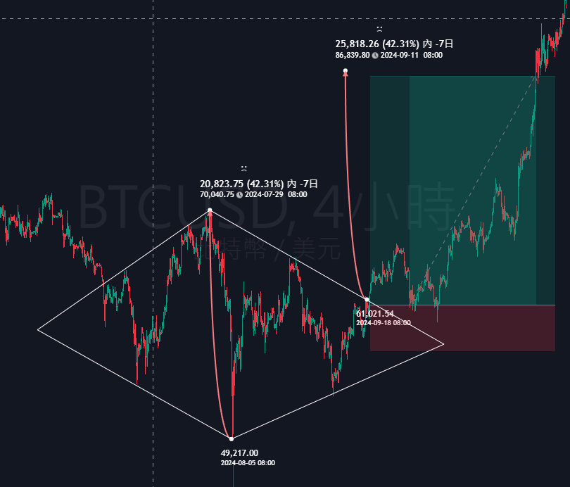 再把這段漲幅延伸到突破位置,這次的目標幅度是42.31%。